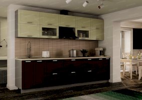 Модульный кухонный гарнитур Нова крем-брюле + горький шоколад глянец (Террикон)