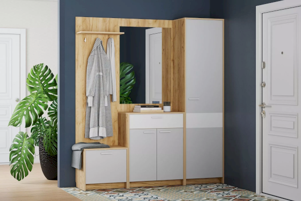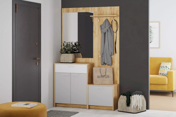 Вешалка оснащена пятью крючками и полкой для размещения головных уборов. Дополните вешалку тумбой и шкафом из одноименной коллекции, чтобы оптимизировать место хранения в прихожей и создать особо гармоничную атмосферу!