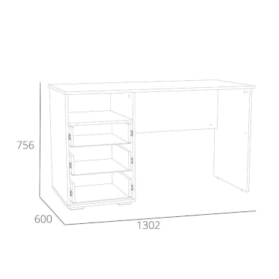 Данная модель дополнена небольшим модулем из трех выдвижных ящиков и открытой ниши. Вместительная полка под рабочей поверхностью прекрасно подходит для книг и тетрадей. Ящика с удобными ручками легко выдвигаются, предоставляя полный доступ к содержимому и позволяя быстро найти необходимый предмет. Скругленные ручки-кнопки  не имеют острых граней.