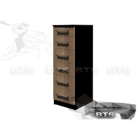 Невероятно практичная и функциональная модель комода Фиеста отлично впишется в любую комнату от коридора до спальни. Компактный размер изделия вместит в себя большое количество вещей за счет шести выдвижных ящиков. Верхнее отделение меньше остальных и прекрасно подходит для хранения мелочей. Комод Фиеста выполнен из ЛДСП высокого качества в контрастных цветах венеге и лоредо. Украшают модель удобные широкие ручки.